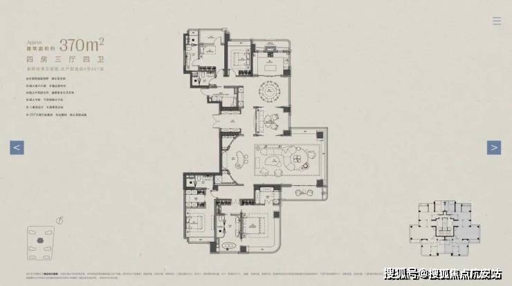 以下为建面约370㎡户型过程稿亮点: