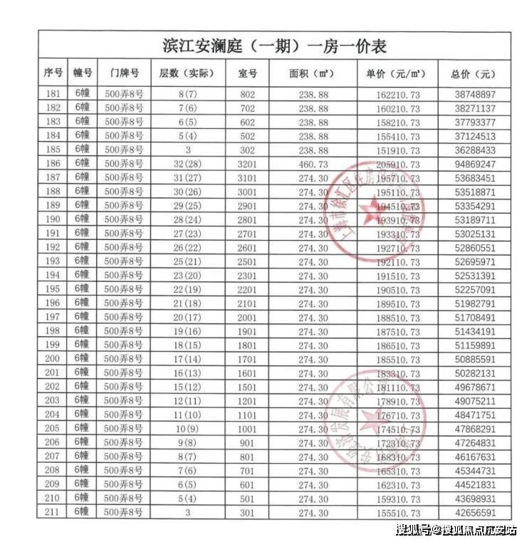 【安澜上海】一房一价表: