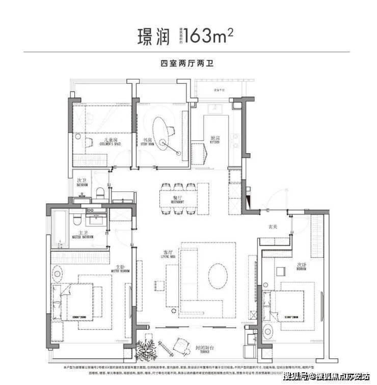 3+1开间朝南,约6m宽厅,南北飘窗,全明通透,环幕鲜氧。建筑面积约40㎡的会客厅和约20㎡的星级主卧空间,奢阔尺度匹配层峯居者。约6m大尺度阳台和4+1类五房设计,可创变多元智趣空间。创研一体化设计,科学空间动线,让业主尽享阔境生活。专属电梯静谧归家,子母门入户,尊荣礼序,升维归家仪式。