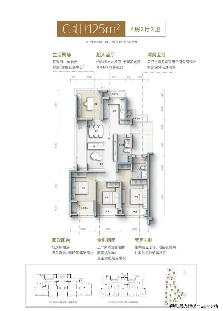 建面约139㎡南向四开间,引阳光肆意倾洒,LDK一体化宽厅,打破空间隔阂,成为家人互动、朋友欢聚的核心场域,餐厨开放式设计,让烹饪不再孤单,自定义X空间,实现“不为人生设限”,次卧家政阳台,兼顾实用与观景,约3.6米奢阔主卧,妥帖安放身心,精细化收纳,生活井然有序......