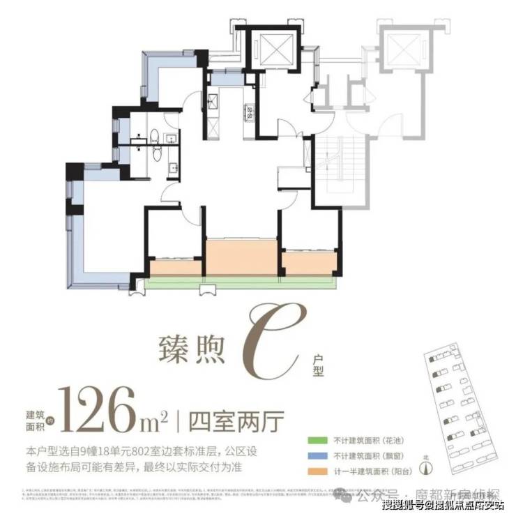 约126㎡4房:四开间朝南,附赠约30㎡,西边套一线临河,可享IMAX级观河景体验,全维度契合改善家庭的居住期待。