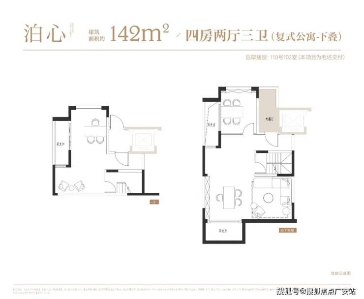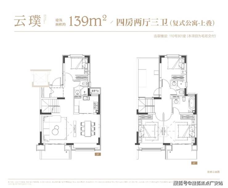 项目叠墅户型有建面约142㎡下叠,建面约139㎡上叠。