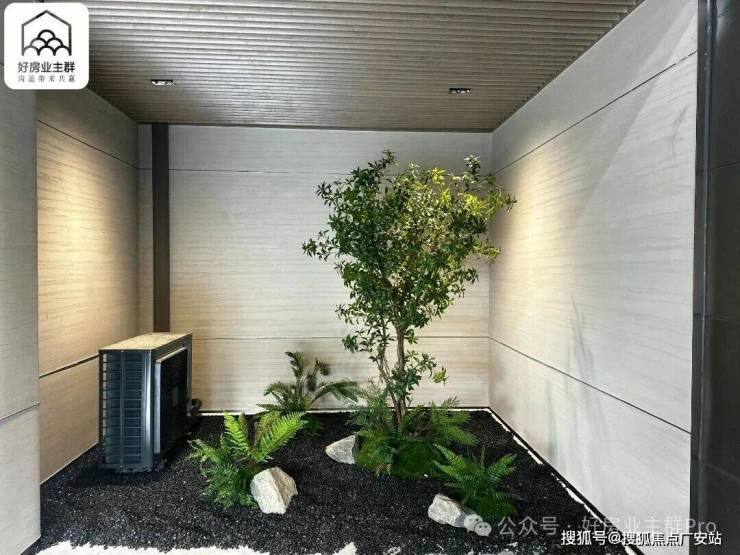 其中中庭水院的池底嵌黑金玫瑰马赛克,中央定制石榴雕塑,与入户大堂相连,两侧连廊可穿行。