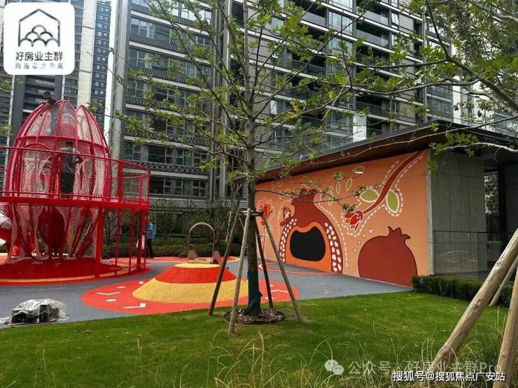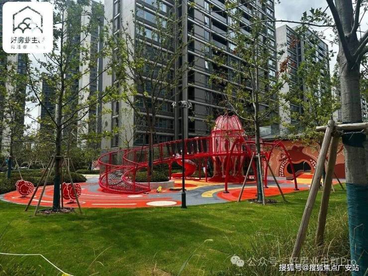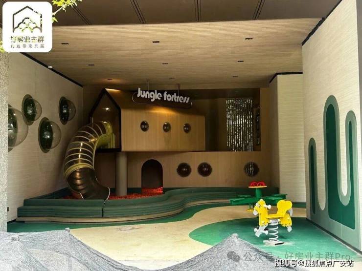 预看房期间露天童玩区游乐设施基本已安装到位,但还有工人在对设施进行调整工作。