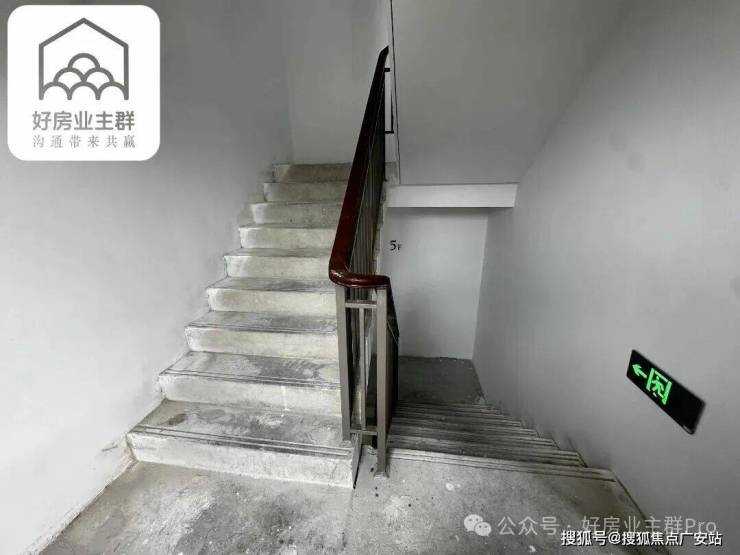 跑盘当日,消防楼梯间施工还未在施工中,墙面还未批白完成,但消防指示标识已经安装。