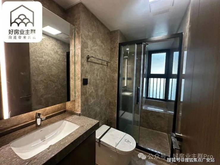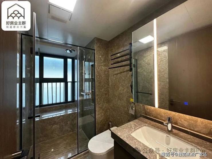 主卫配备了AXENT智能马桶+可加热毛巾架+石材台面+美妆冰箱;