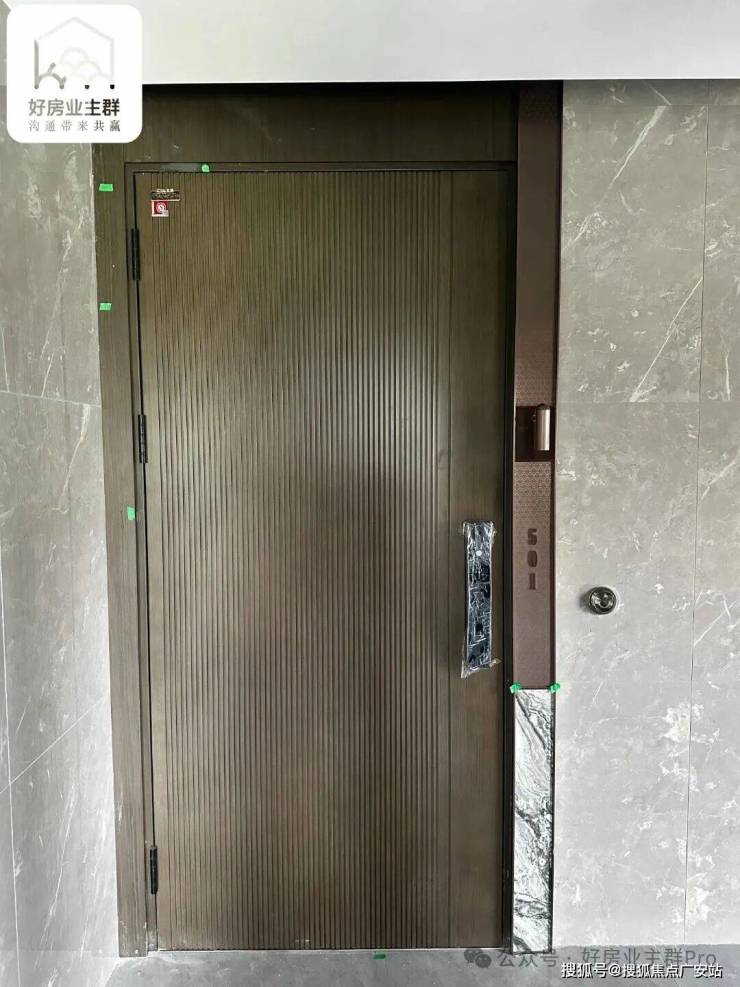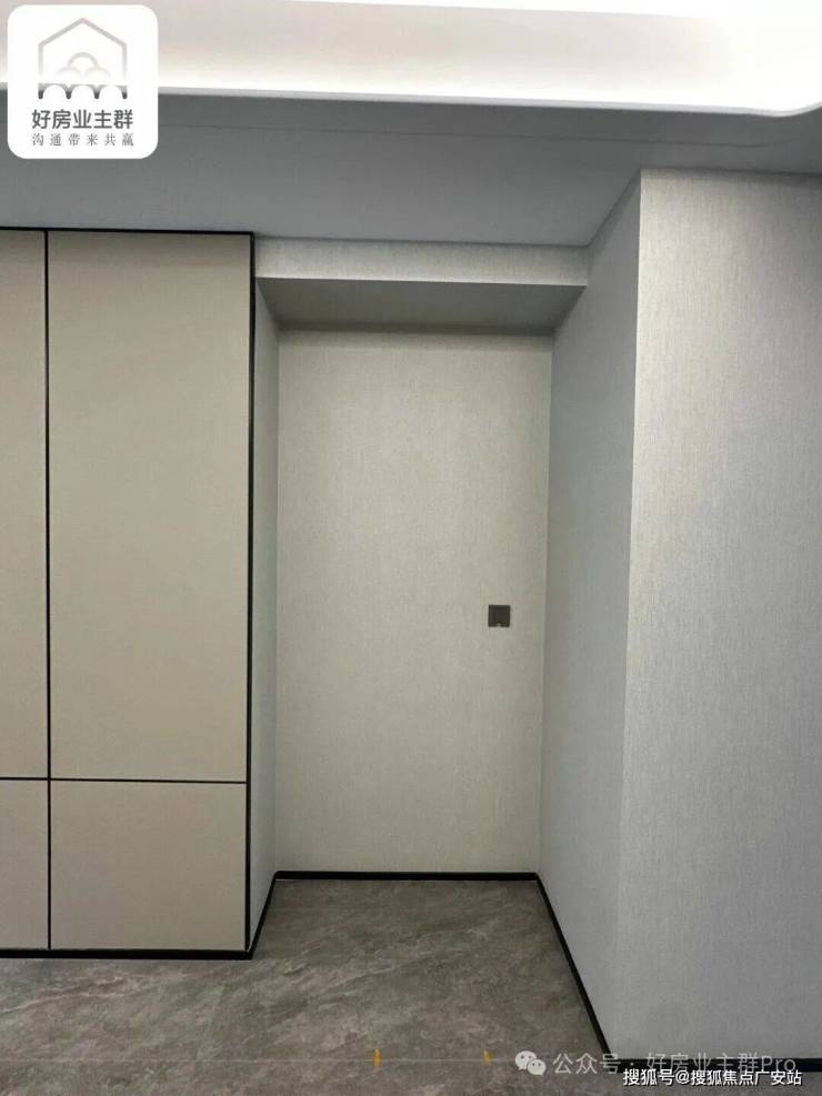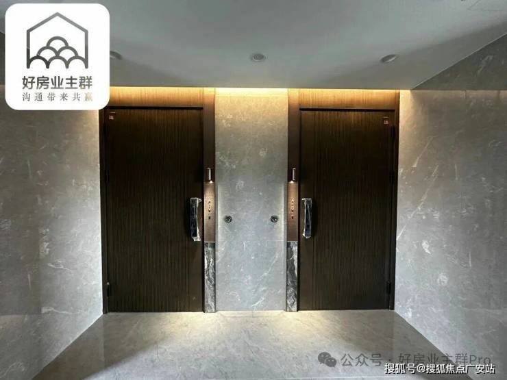 标准层候梯厅整体设计较为简单,在入户门上方吊顶内设置了灯带,增加了归家体验感。