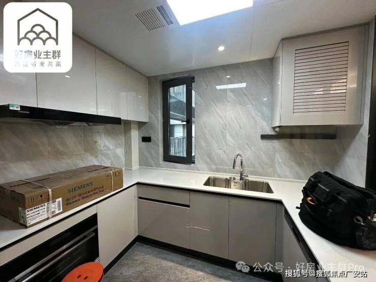厨房配备了西门子厨房四件套,弗兰卡的水槽及龙头,滨特尔的净水系统,金牌定制橱柜,松下凉霸等。