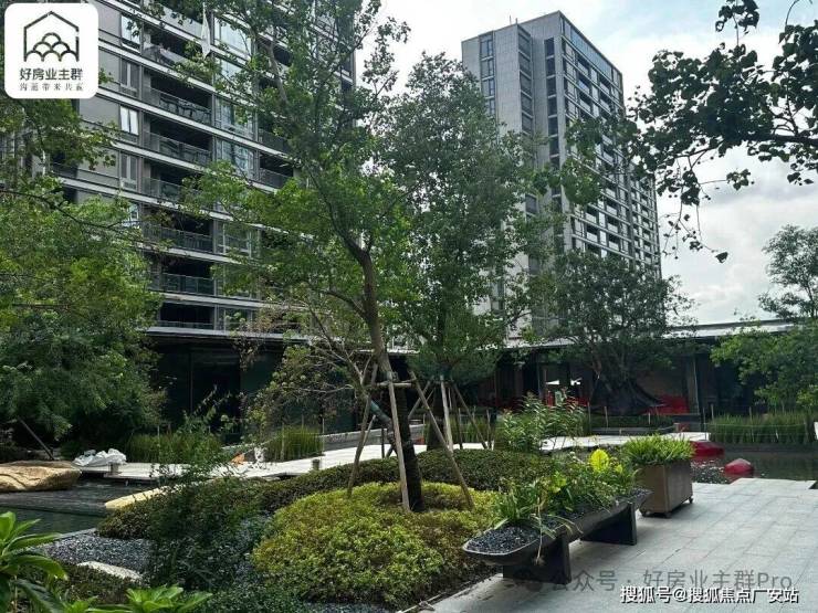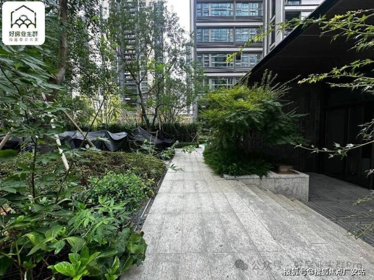 园林景观已基本呈现,绿植状态较好,部分草皮还未铺设完成,部分景观还未呈现交付状态,后期还会进行升级。