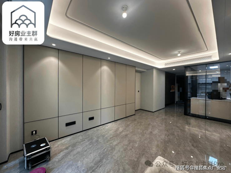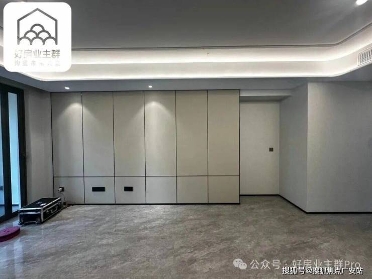 休闲区域软装还未入场,精装保洁工作还未进行。
