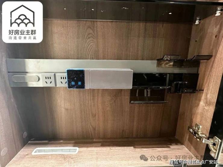 镜柜内置插座+隔板,吹风机、电动牙刷、剃须刀可实现隐藏充电。