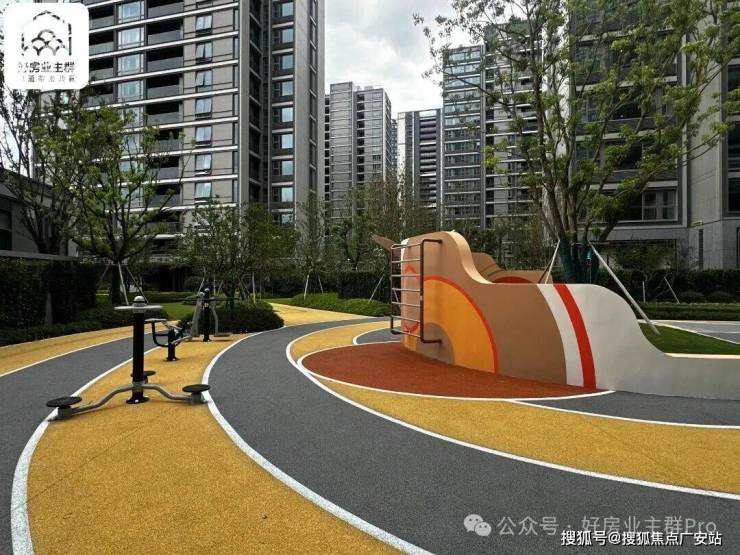 健身区域目前安装了少量健身器械,园区内非主干道区域地面,设置了塑胶跑道活动区。