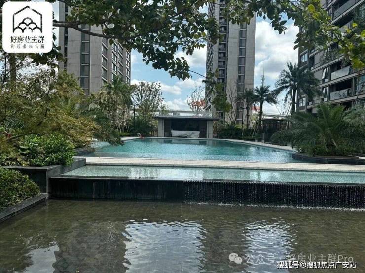 泳池则设置了成人池+儿童戏水池双分区,配置淋浴亭、景观廊架、躺椅区。