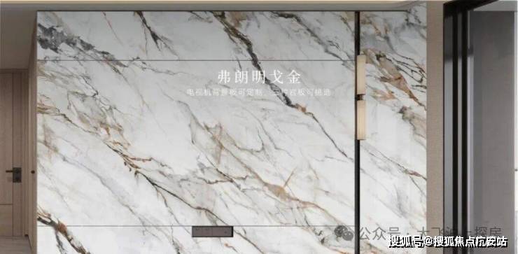 充分考虑业主的个性化需求,在电视背景板提供了新潘多拉、云中翡翠、弗朗明戈金三种结晶釉面岩板选择,成本更高,施工难度也更大。