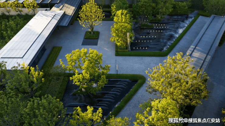 项目景观团队使用新加坡景观设计团队CICADA诗加达,采用引江入园、以水带路的手法,将滨江舒阔的国际生活平移到社区内,打造约3000方水景、6万㎡景观秘境,媲美全球奢华酒店。