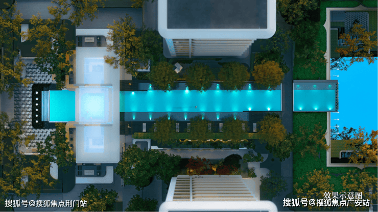 首先,社区景观完全在板上铺展,把大部分配套设施用房隐于板下,这样花园面积更大、更集中,住宅就像是种在花园里的房子;
