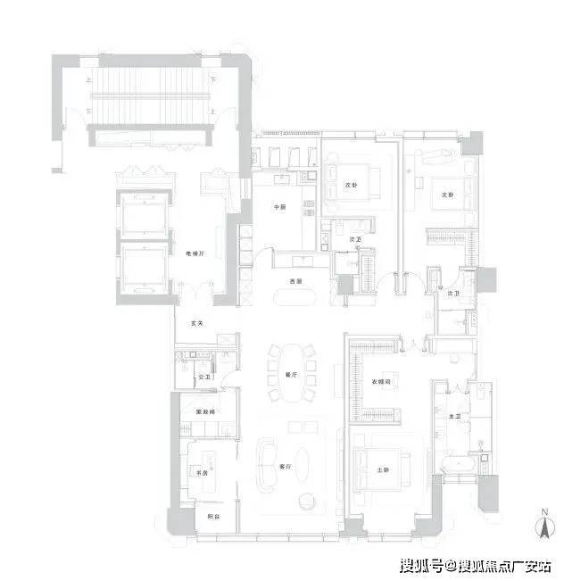先看布局,这个户型的最大特点就是空间上的平权: