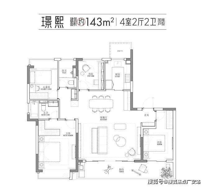 户型面积:建筑面积约134㎡三房、134㎡四房、140㎡四房、143㎡四房、