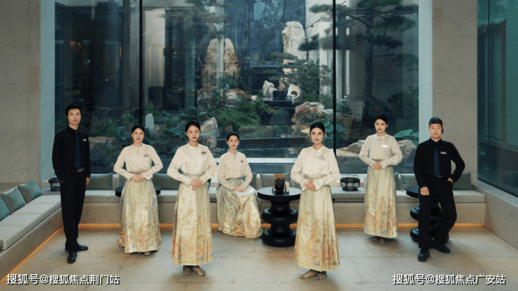 约60米威仪门庭,融入重檐、藻井、挂落等华贵建筑元素,搭配景泰蓝白玉屏风、汉白玉石桥等元素,复现马远的画中诗意,让轴线礼序的尊崇与自然意境相得益彰。