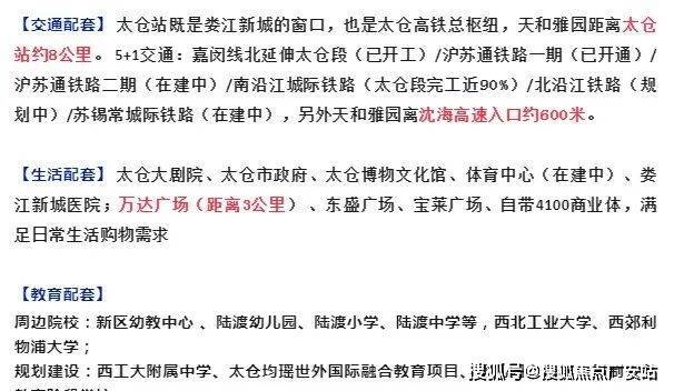 最大的亮点就是距离规划中的嘉闵线北延伸十八港路站仅约400米的距离,是目前所知太仓区域内离地铁站ZUI近的项目,同时,十八港站是上海进入太仓的第一站站点,在“沪太同城”发展战略下,天和雅园凭借其临近上海嘉定,居于太仓临沪发展前沿优势,有效承接上海外溢产业产能,是名副其实的“上海下一站,下一站上海”。