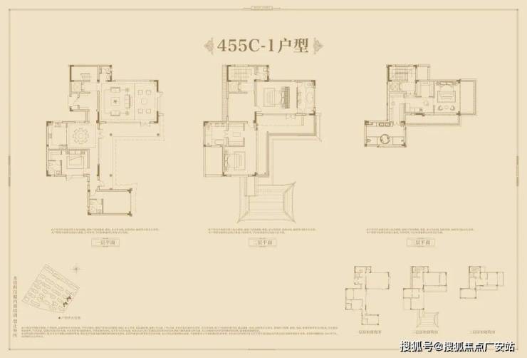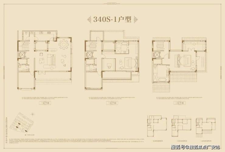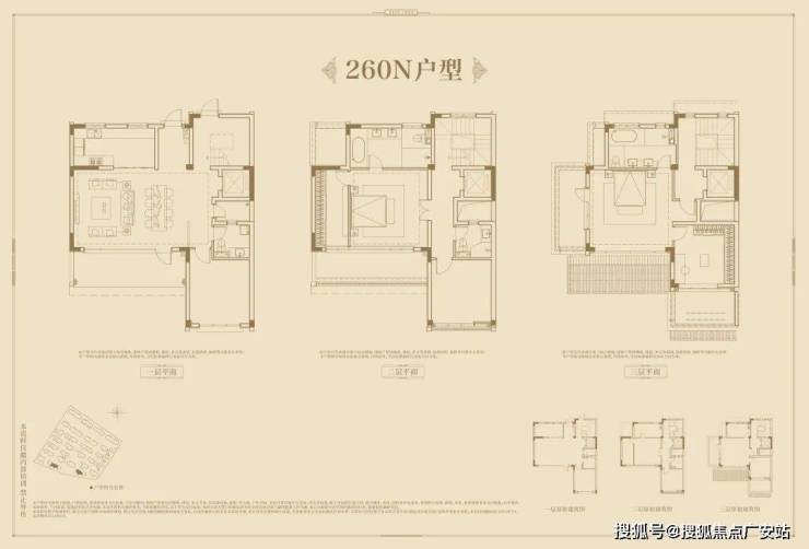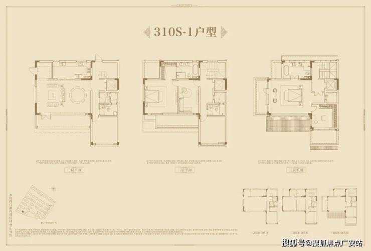 面积配比:3栋独栋约450平;16套双拼约340-360平;27套合院约250-310平。