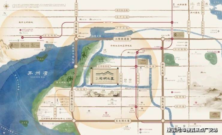 *天赋盛景 一线太湖*约400米即达千亩东太湖风光带,毗邻万公堤森林公园、东太湖生态园,坐揽万顷太湖盛景与湾区繁华。