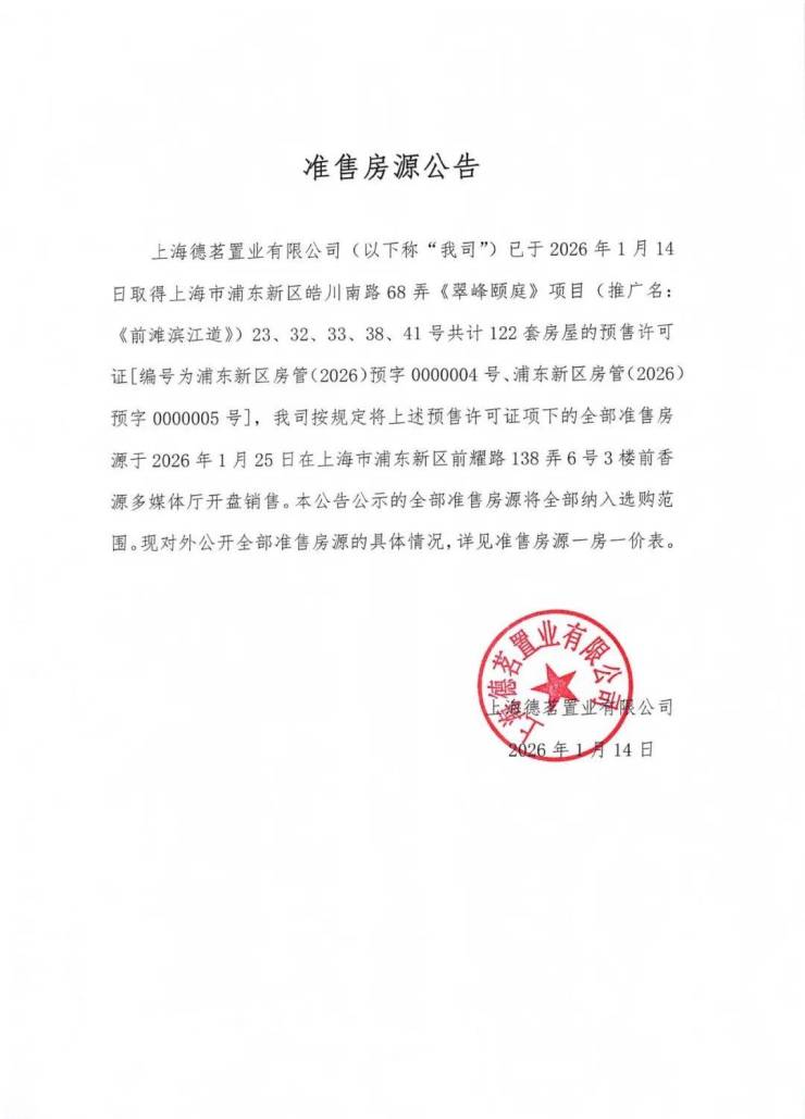 为保障购房者权益,规避非官方渠道误导,现将前滩滨江道2026年3月2日最新官方信息公示如下,敬请认准: