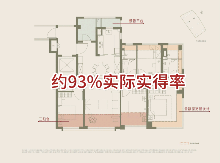 市面120户型的实得率普遍在 85%-90% 之间,该户型直接做到 超95%。