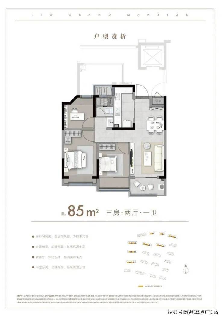 85平户型图以及样板房照片如下