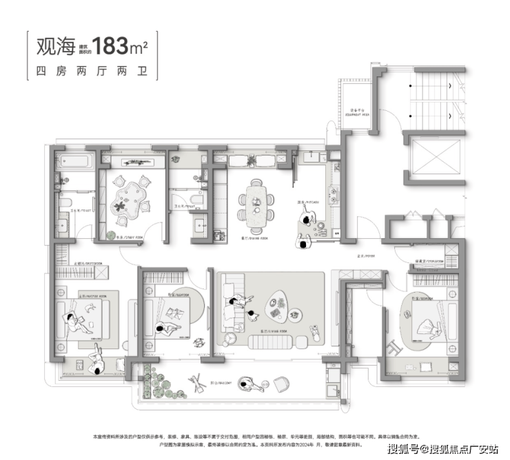 中海狮山云起项目户型设计都是改善大平层,建面约153、183、198、223㎡户型。