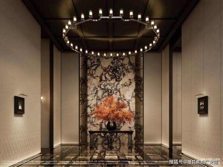 同时也得益于两个地块融合在一起形成了完整地块,项目打造了约160米超长中轴,约4000㎡中轴景观,约700㎡落玉水院、下沉庭院以及私属入户花园。