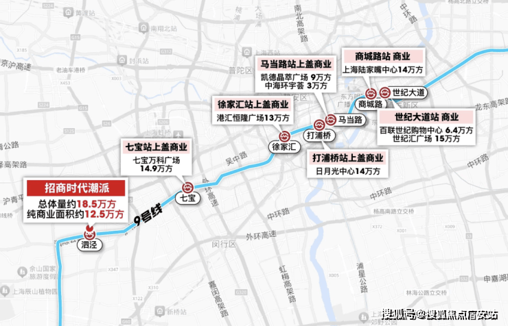 首先便是,作为9号线泗泾站新一代超级TOD,拥有着约18.5万方的商业,「招商时代潮派」与地铁商场直线仅约200米!更重要的是,它还拥有着3站七宝、6站漕河泾、9站徐家汇的强大通勤便捷度。这在全市500万能级的置业板块中,都称得上是顶尖的存在!