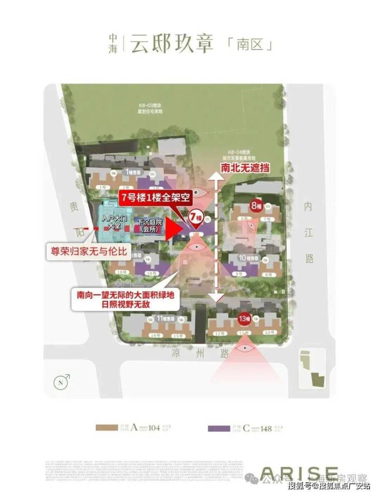 南区有7栋楼,以下为南区效果图及南区景观: