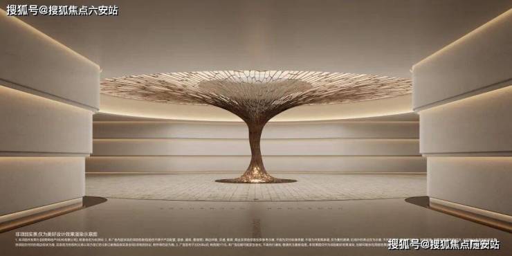 杭序府景观设计以“九溪烟树”为蓝本,打造6000平方米立体溪谷园林,通过风雨连廊串联黄金树艺术装置与下沉庭院。