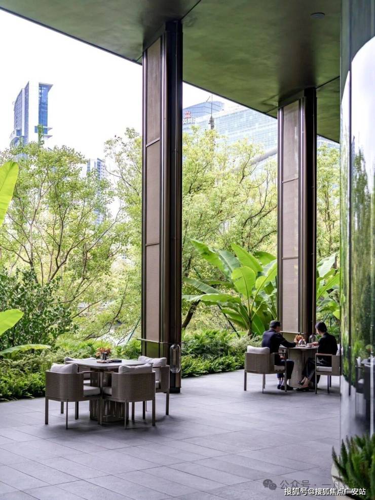 穿过水上景观廊,一方斓亭立于水中,感受四季之美;乌桕树下社交卡座,与好友相会、品酒放松。让人在杭州奥体繁华之心,重返自然溪谷,享受惬意时光。