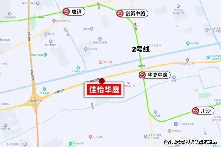 【佳怡华庭】项目位于川沙和唐镇交界处,和唐镇仅相隔一条华夏东路,距离2号线华夏东路站约1.3km。