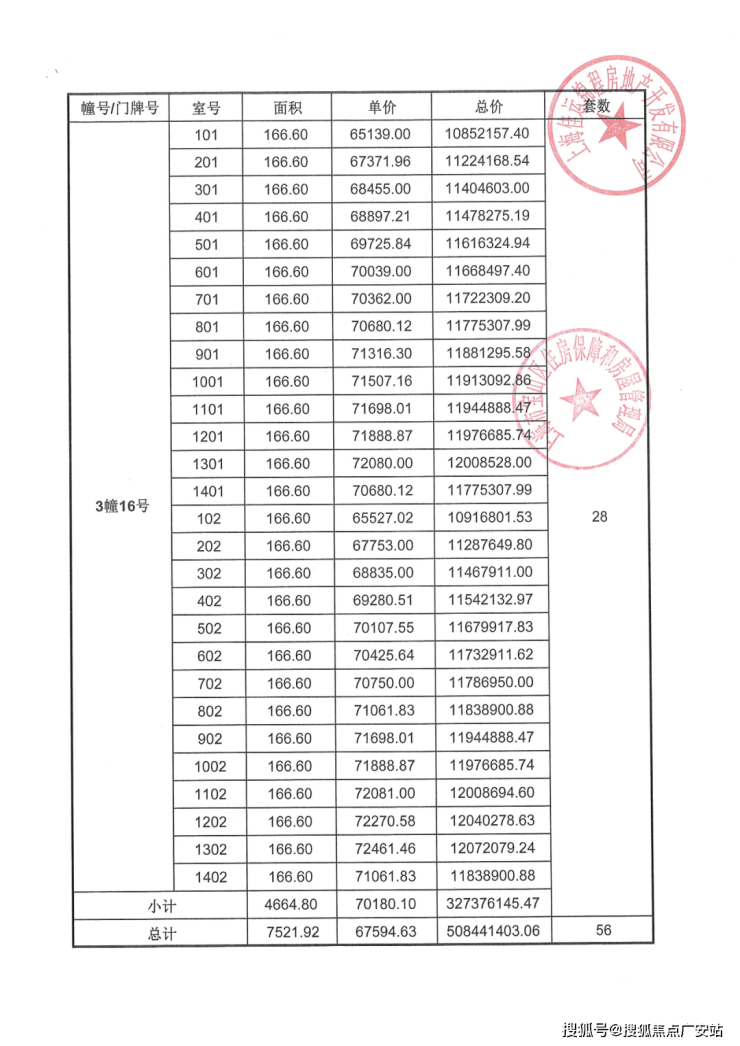 项目一房一价表▼