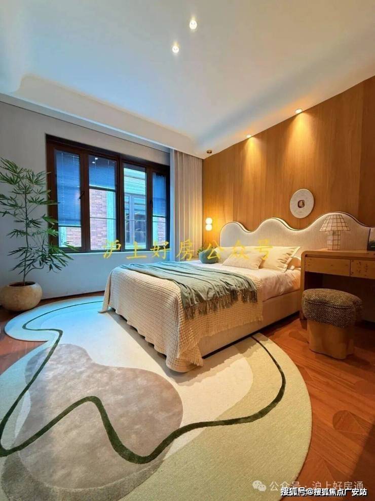 在今年上半年大家都在卷人字拼地板的基础上,外滩源著主卧地板升级为柳叶拼接,进一步做了升级: