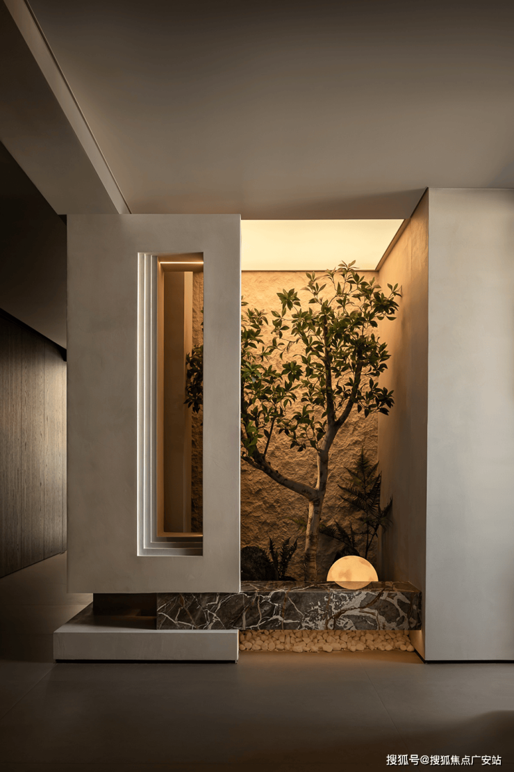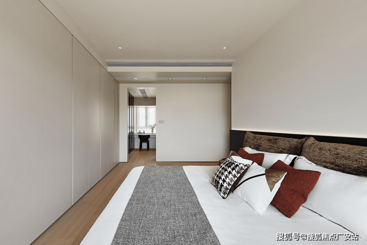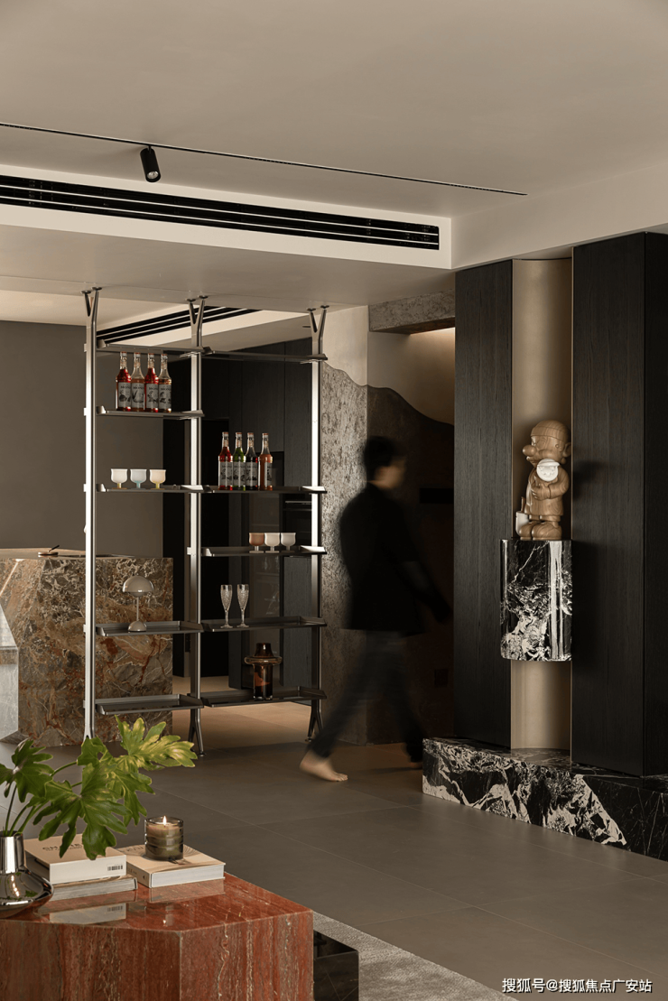 以深木色与中性色调为主调,沉稳静谧。深色的木门与柜体,纹理细腻,质感十足。线性灯带巧妙嵌入,柔和的光线勾勒出空间轮廓,明暗交织间,赋予空间层次与立体感。