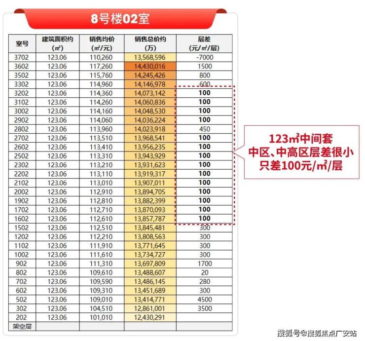 高区优势同样不容小觑。8栋中间套高区的楼层价差仅为100元/㎡/层,对于追求优质采光和开阔视野的购房者来说,完全可以“从高往下选”,以极小的成本增量锁定更佳的居住体验。