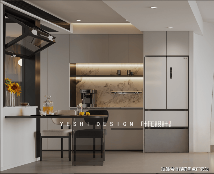 用餐区的设计理念深植于“简约温馨,光影交融”,空间在简约与温馨中达到了完美的平衡,从精致的餐具到时尚的餐桌椅,再到大气的厨具,在这里,优雅与温馨并存,艺术与生活共融,每一处都彰显着对生活品质的追求。