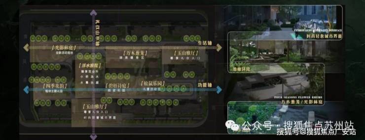 以昆山《玉山雅集图》为蓝本,师法苏州留园,“三轴一环两厅一庭五院”打造“可游、可玩、可赏、可聚”的沉漫式东方园林。