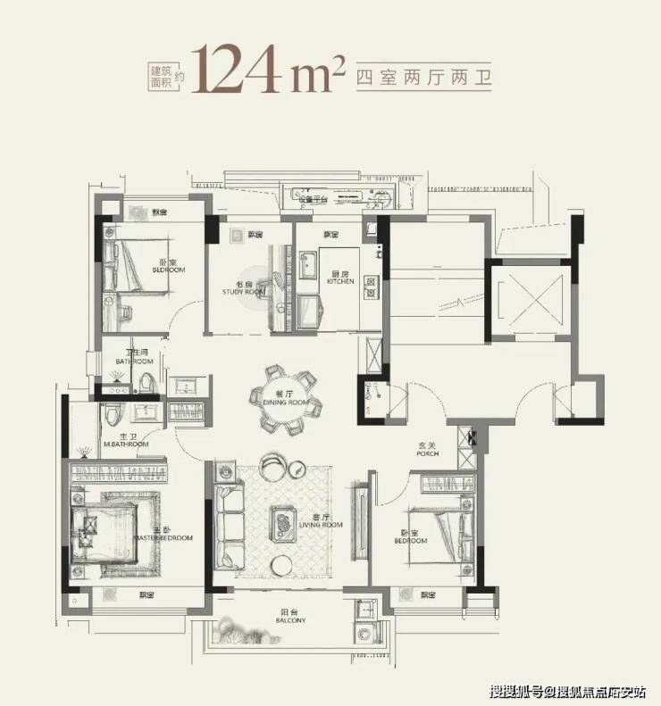 经典平衡对称美学,让建筑庄严不失灵动。大面玻璃、金属格栅、现代铝材搭配,辅以玫瑰金与学府灰色彩,彰显建筑立面的鎏金质感与美学。4大景观中轴、全域花园主题空间,让家生长在公园里。