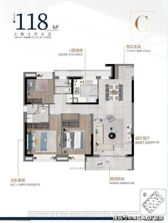 从位置图可以看到,新推独角兽住宅位于103板块顶科中芯,海港大道门户之上,是103核芯之中的核芯。与莫比乌斯科学公园、T2中运量美人蕉站、临港中心等城市级配套资源更近。同时也在整个社区的核芯位置,楼间距更大(部分楼栋),瞰景体验良好。