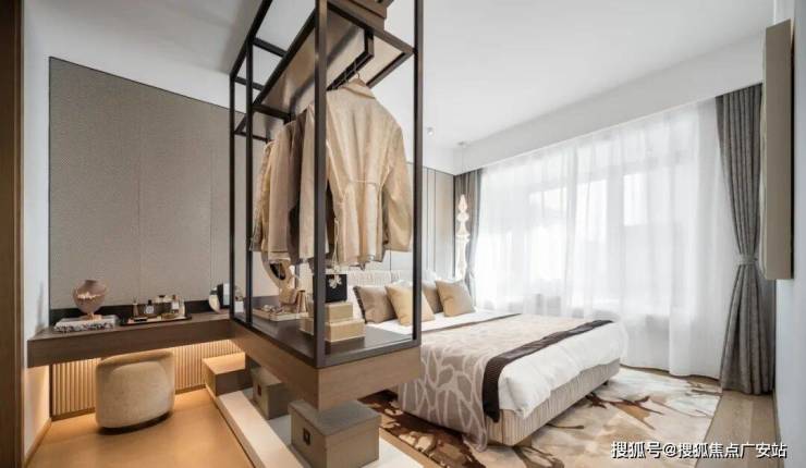 (样板实景图)还有主卧奢华套房,不仅空间上宽敞阔绰,还出乎意料地配备了独立衣帽空间+浴缸,这完全是大平层级别的享受