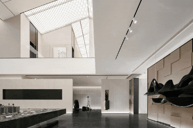 起源于苏州马头墙等形制加上现代几何手法,辅以留白的墙面、金属的线条,构建出了最为姑苏的城市客厅