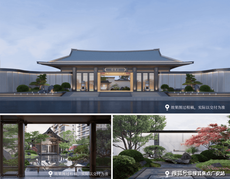 宽约58米的府门,将千古王宫贵胄御用的歇山顶化为浦城名望家族传承的身份象征;承袭新中式理念打造的东方园林,采用框景、对景等手法,将浦城三千里壮丽河川复刻入园;更将浦城“九龙桂”作为项目精神图腾,融入视觉IP设计,起敬千年丹桂文化。