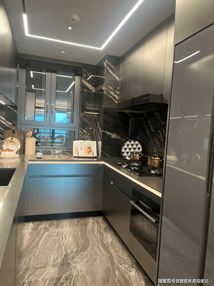 动静分离设计,入户独立玄关,U 型厨房动线流畅。