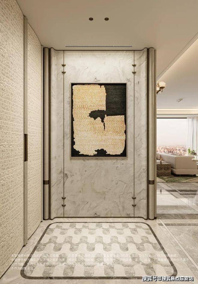 从入口玄关地面全水刀石材拼花,到主卧床头的艺术贝母马赛克,都是高难重工工艺。✅保利外滩曜售楼处电话:400_998_7894☎️☎️✅✅✅✅︎✅︎✅