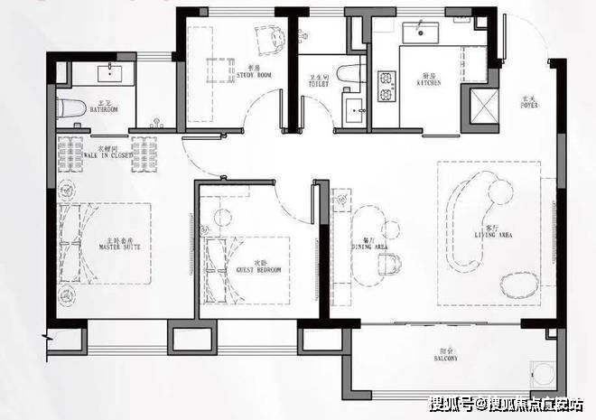 户型售楼处电话:400-8558-334【电话】采用动静分离设计,卧室区和客厅餐厅活动区分离。主卧是一个套间,有尺度足够的衣帽间,主次均有飘窗。